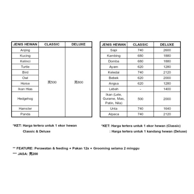 3. Jika dalam keadaan hiatus, sibuk, atau tidak dapat on sama sekali untuk memberikan makan, pemilik dapat menitipkan pet dan animal farm-nya, atau meminta bantuan kepada staff untuk di “take care”. Tentunya dengan membayar biaya tambahan di luar biaya makanan.
